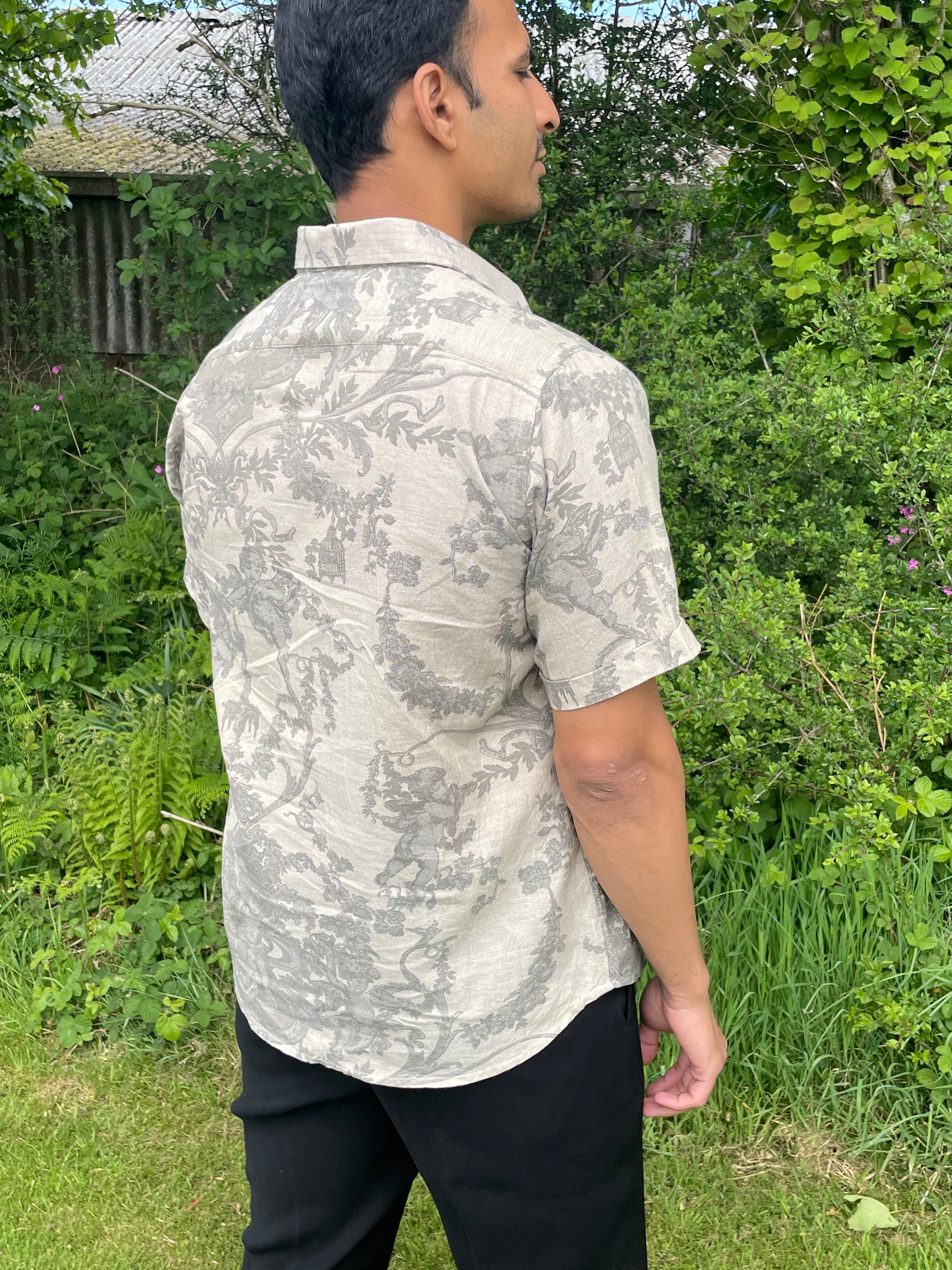 Float into a soft reverie with our Cherubs on Chambray – a delicate dance of vintage romance and modern texture. Ethereal cherub motifs drift across breathable, lightweight chambray in a muted sky-blue hue, offering a dreamy twist on classic denim.